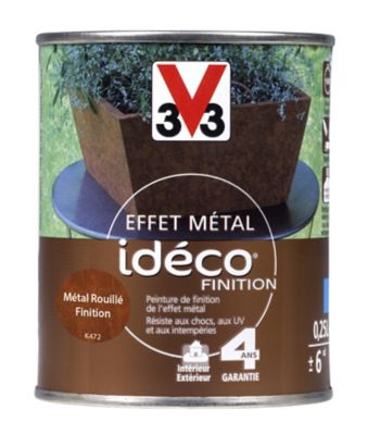 150 ml de finition rouille foncé. Préparation effet métal extérieur décolab® v33 métal rouillé 0.5 l description cette peinture effet métal, à appliquer avant la finition effet métal, permet de donner la texture et la couleur de fond à vos supports. Elle a l'avantage de s'appliquer sur vos différents types de supports extérieurs, vous garantissant ainsi la même teinte et des économies de pots de peinture. Pack de 800 ml contenant : Pour une imitation parfaite de la rouille sur tous supports en extérieur et intérieur.