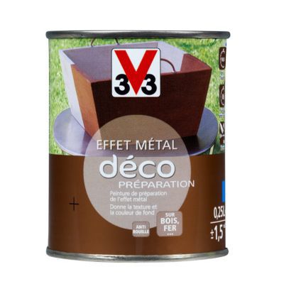 Préparation effet métal extérieur décolab® v33 métal rouillé 0.5 l description cette peinture effet métal, à appliquer avant la finition effet métal, permet de donner la texture et la couleur de fond à vos supports. La peinture du fer et des autres métaux nécessite en effet un produit spécial, offrant à la fois : Il est nécessaire de choisir avec soin la protection transparente.les possibilités d'utilisation de cette peinture sont variées tant elle peut servir pour différents travaux de peinture : La peinture effet rouille s'applique sur tous supports en métaux ferreux et non ferreux, pvc, bois, stuc, résines, statues, ferronneries d'art, meubles en fer forgé, cadres, bibelots. Elle peut être utilisée sur tous les métaux ferreux (aluminium, acier galvanisé, zinc, etc.) et non ferreux (bois, plastique et même le verre), ce qui en fait la peinture la plus multiusage de notre sélection.